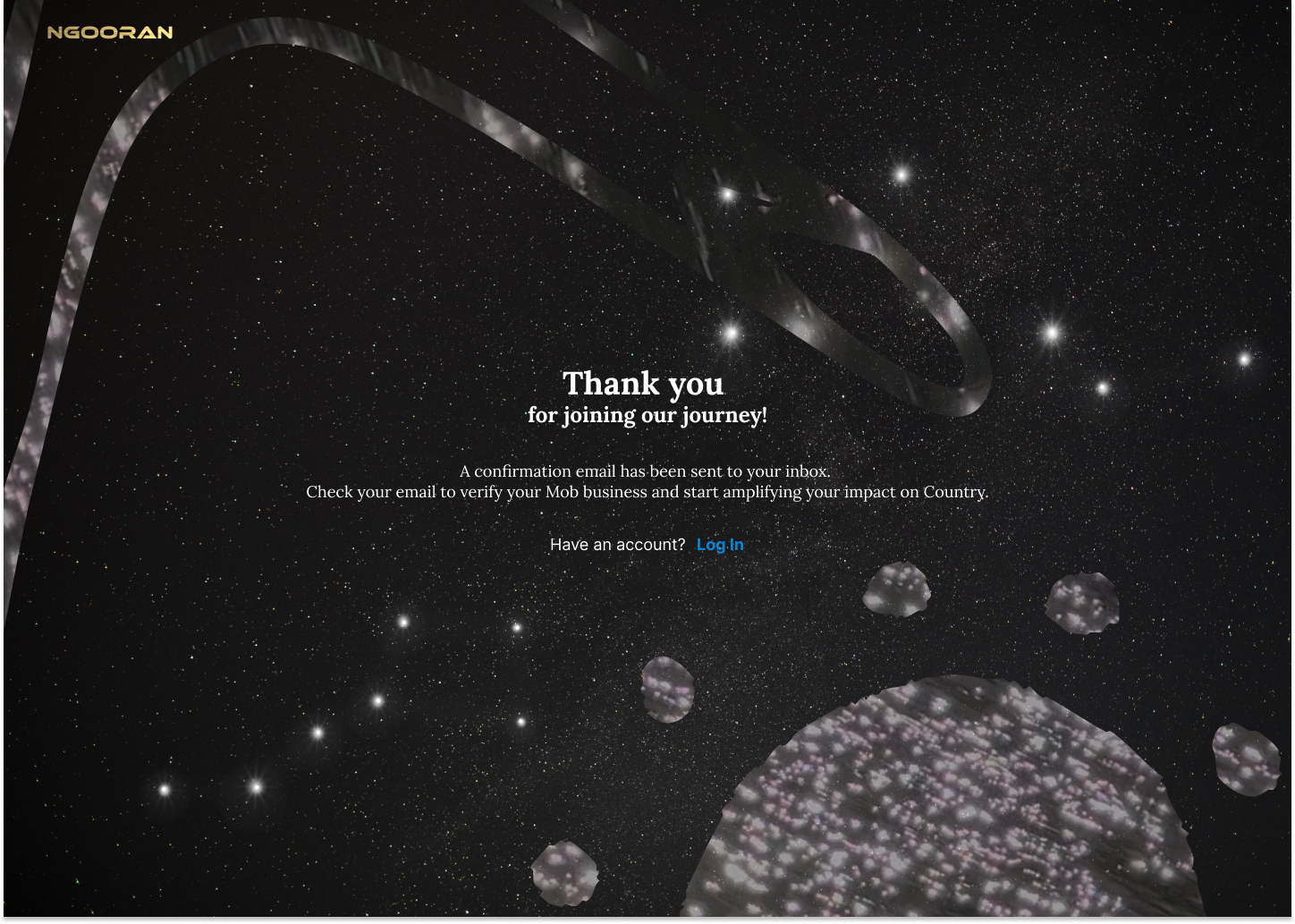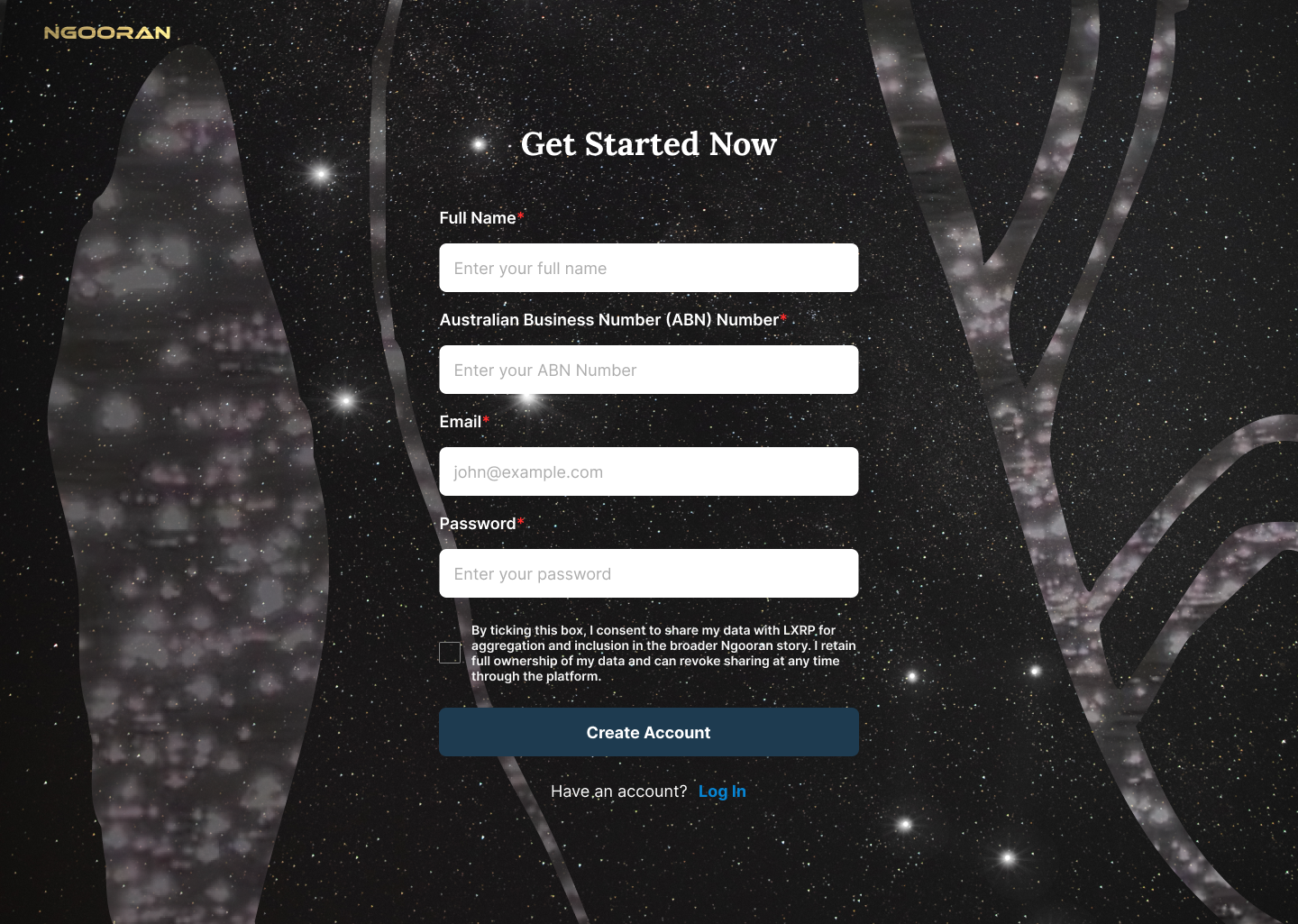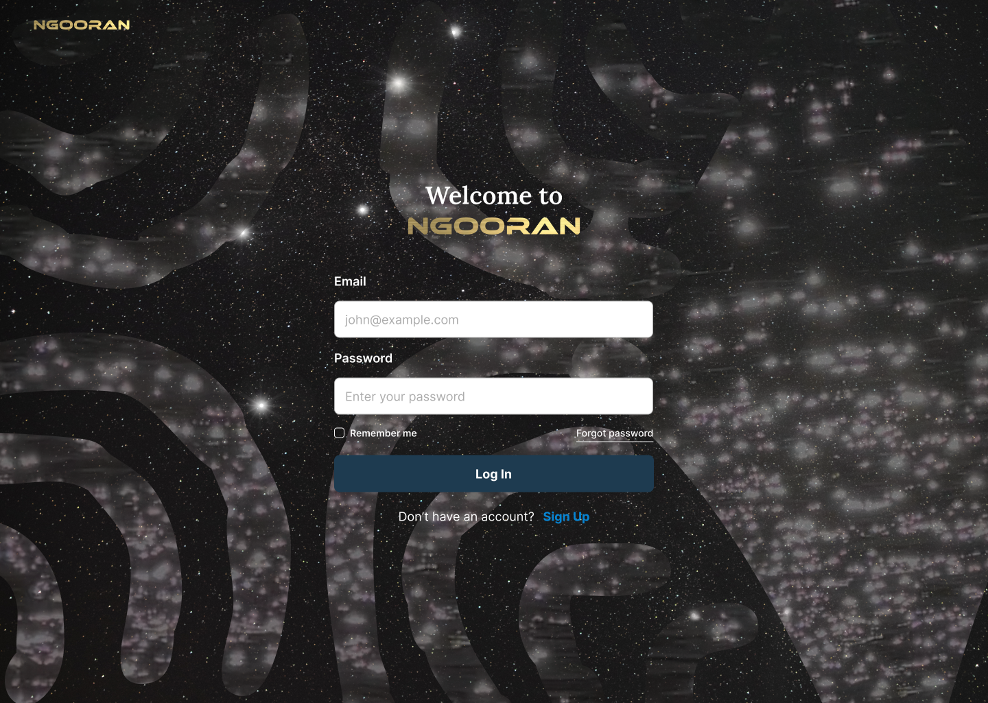 Design a cohesive digital experience for Ngooran, a platform that protects Aboriginal businesses and makes genuine cultural and workforce impact visible. This included a five-slide narrative landing page, login and sign-up flows, a post-login “Singing-In” welcome screen, and the core system theme used across internal pages. The goal was to translate Ngooran’s vision — a living map of cultural and economic impact — into an interface that feels respectful, trustworthy, and grounded in Country and story.